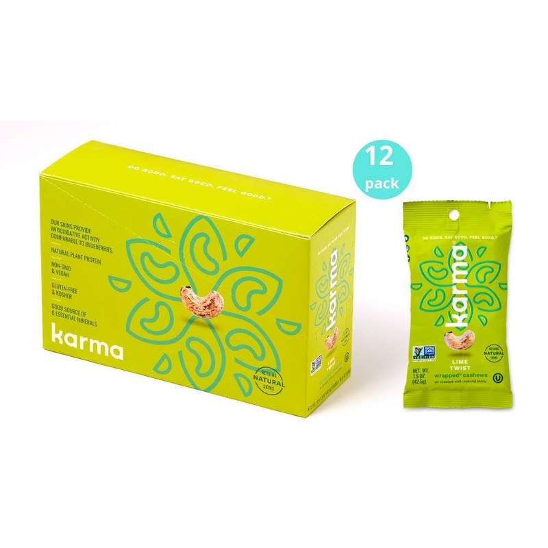 Karma Nuts Lime Twist Cashews | 12, 1.5 Ounce Snack Packs | Whole, Roasted, Wrapped, Keto Friendly, Vegan, Non Gmo, Gluten Free, No Added Sugar, Low Net Carb, Natural, Healthy, Everyday Snack