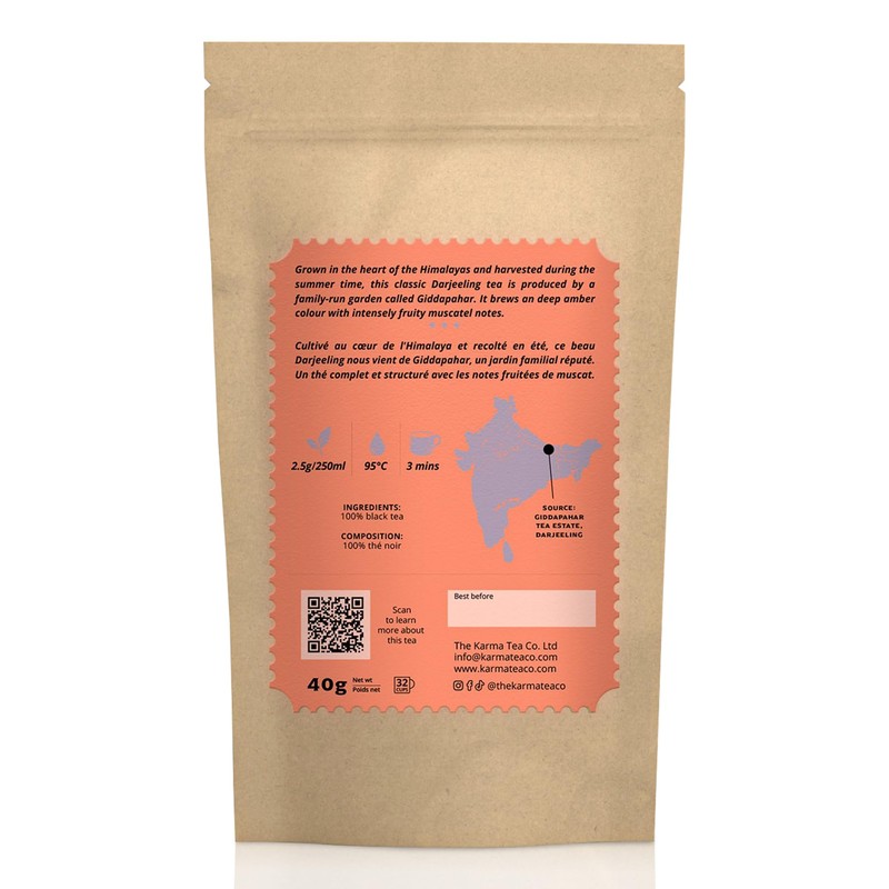 KARMA TEA CO.| Summer Darjeeling Loose Leaf Black Tea, 40g (32 cups) | Muscatel, Honeyed, Luxurious| Rich in Antioxidants & Polyphenols