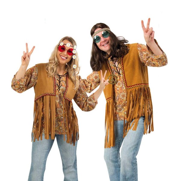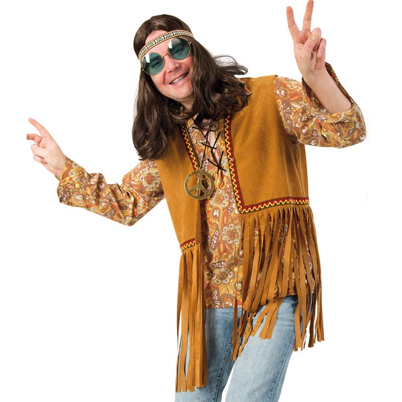 KarnevalsTeufel Hippie Vest in Brown for Adults with Fringes 60s/70s Fancy Dress Flower-Power Unisex (X-Large)