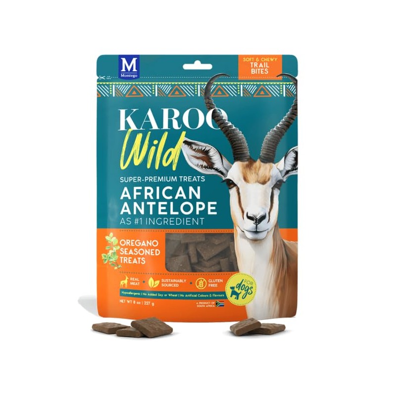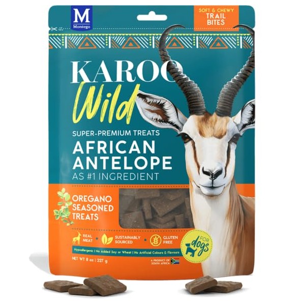 Karoo Wild Trail Bites Oregano Seasoned Treats for Dogs – 8 oz – Soft & Chewy Protein Bites Made with African Antelope – Great for On-The-Go Rewards & Training