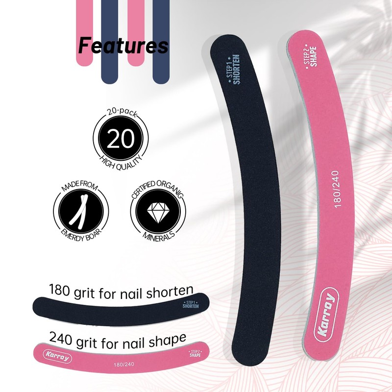 Karroy 20 limas de uñas de doble cara y pulidores para uñas naturales, limas de uñas para uñas acrílicas (A-Banana 180/240)
