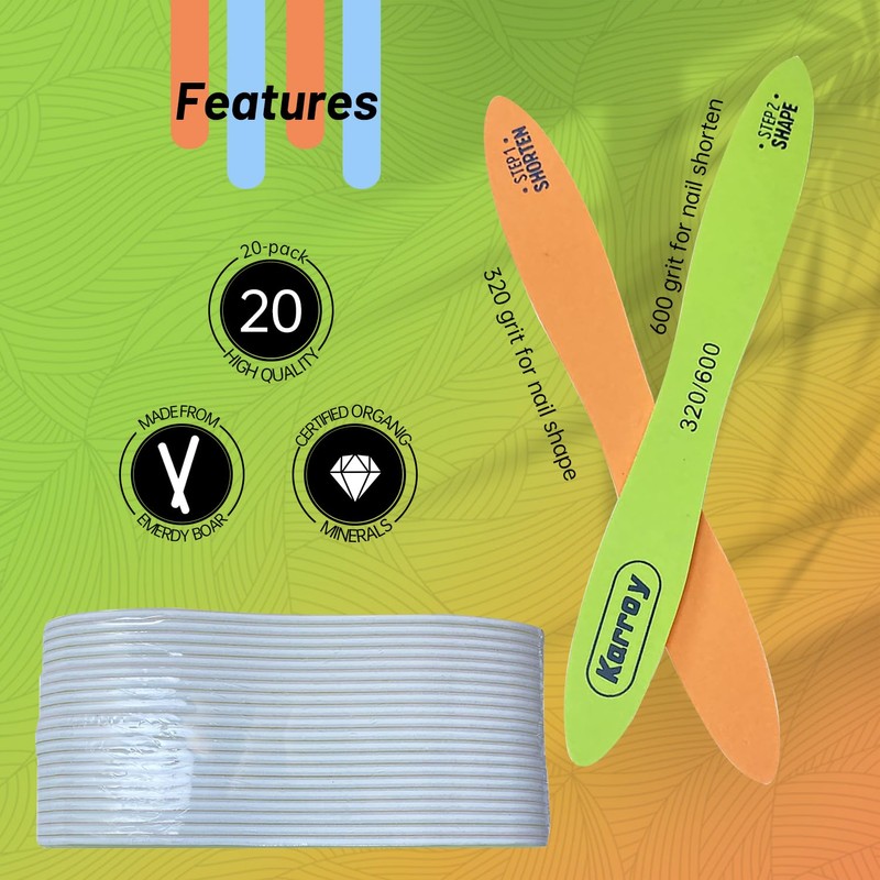 Karroy Limas de uñas y pulidores para uñas naturales de doble cara, 2 pasos, herramientas para acortar y dar forma a las uñas, 20 piezas (C-Skateboard 320/600)