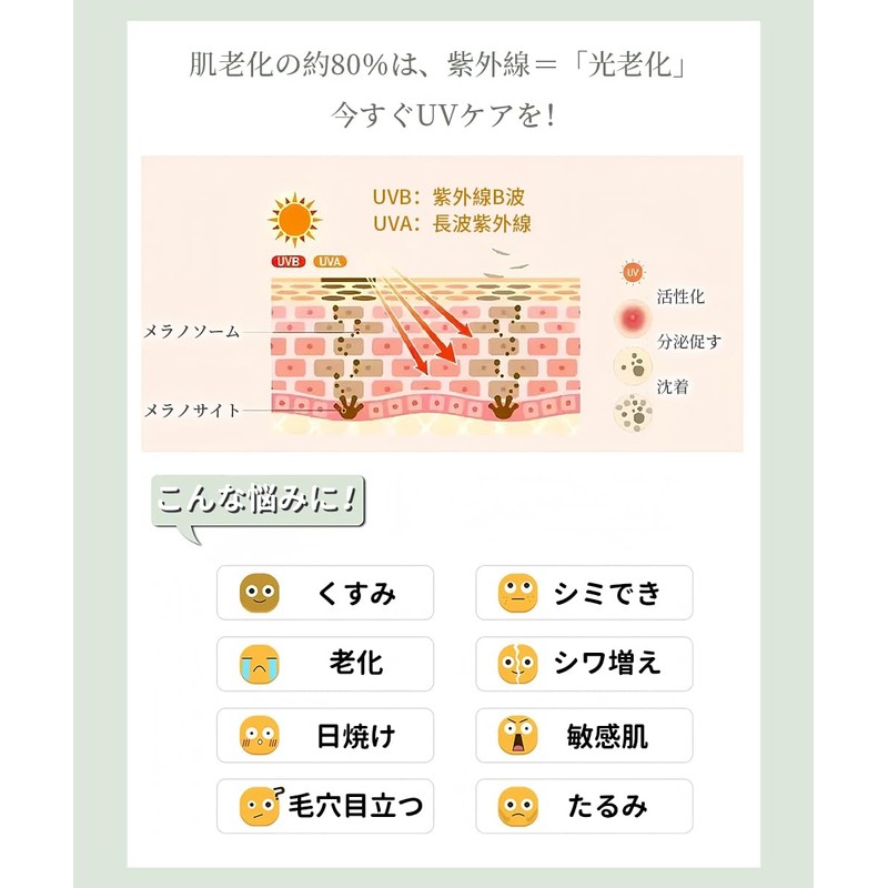 - 【完全遮光】UVカット99.9%以上で、肌や髪を紫外線UVA・UVBからしっかりと守ります。シミやシワなど、肌老化の原因となる紫外線から自信を持って守りましょう。