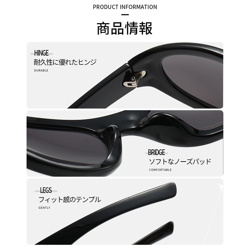 - 【ファッションサングラス】キャッツアイフレームとY2K美学を融合させた未来感あふれるデザイン。レトロとハイテクを織り交ぜたレンズが、SNS映えするトレンドスタイルを演出
