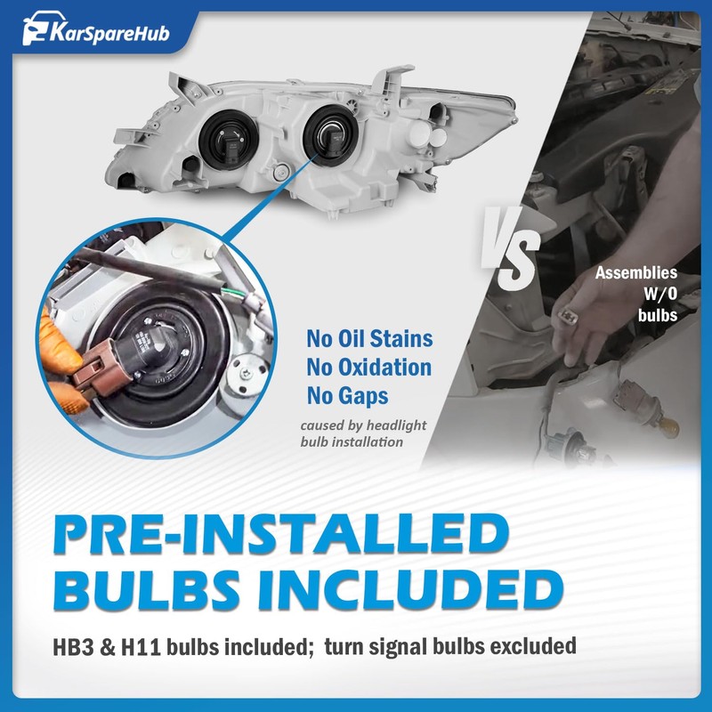 KarSpareHub Anti-Fogging Headlights Assembly for 2007-2009 Toyota Camry Headlamp Replacement Automotive Driver & Passenger Side with Bulbs