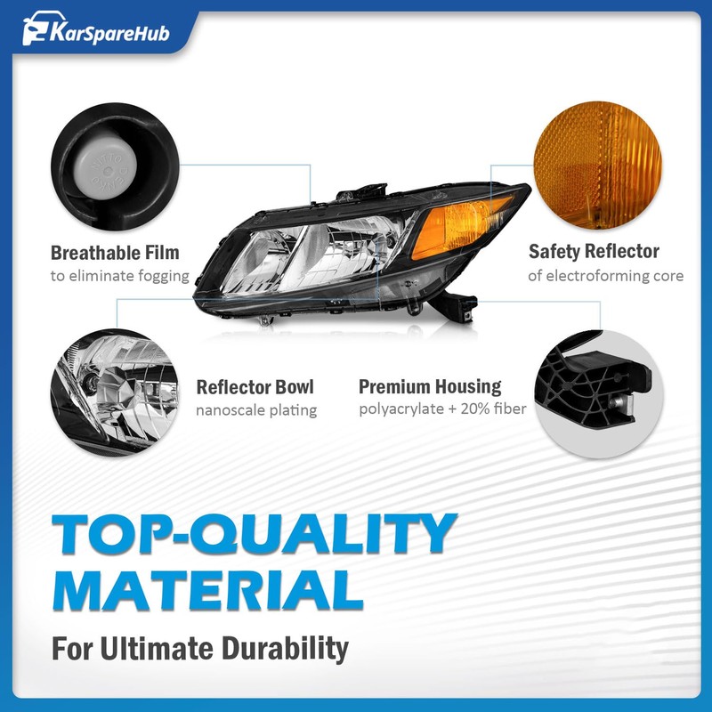 KarSpareHub Headlights Assembly W/Bulbs for 2012-2015 Honda Civic 4Dr Sedan, for 2012-2013 Honda Civic 2Dr Coupe, Driver & Passenger Side, Halogen