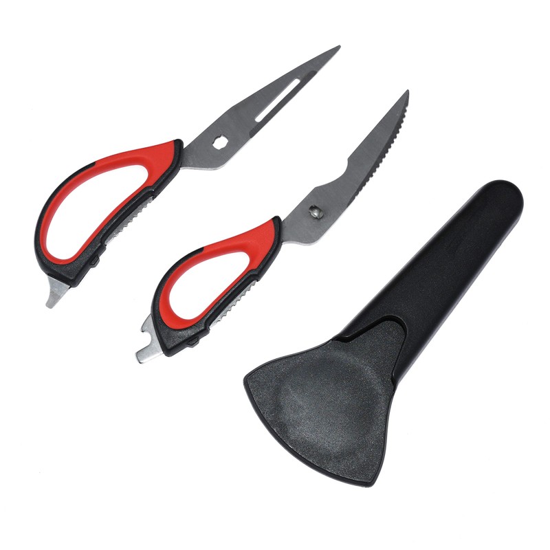 - 1.Can be used as a Heavy Duty Scissors, Food Slicer, Fruit & Vegetable Peeler, Meat & Bone Cutter, Fish Scale Remover, Small Nut Cracker, Bottle Opener, Screw Drinver and Serrated Knife.