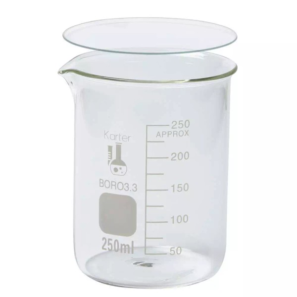 Karter Scientific 250ml Low Form Griffin Beaker w/ 70mm Watch Glass, Karter Scientific (single)