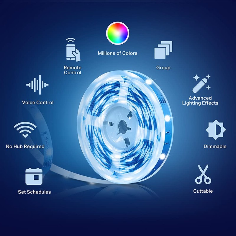 - [Animated lighting effects] The Kasa Smart light strip features advanced animated lighting effects, with many different preset effects to choose from. A unique lighting experience for your TV, gaming rig, parties or general ambiance.