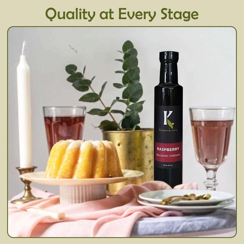 Kasandrinos Raspberry balsamic vinegar, Greek salad dressing, Aged balsamic vinegar Used to enhance salad dressings, marinades, and sauces, best balsamic vinegar, 250 ml / 8.5 oz Bottle