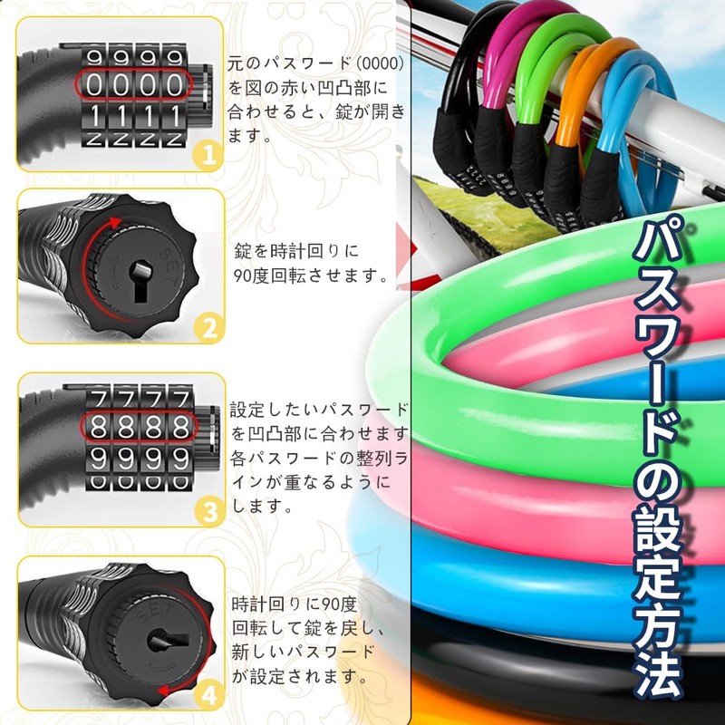 - 3. High performance lock: using high strength steel wire with cutting resistance, PVC coating on the surface for better durability. ABS plastic lock body is not easy to deformation, the lock core is made of steel wire, protect your bike from theft