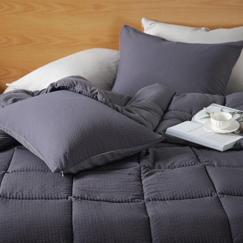 - Cozy & Shaggy Comforter - The front of the Comforter is designed as seersucker with a stereoscopic bumpy feel, and the back is made of microfiber. The All Season Comforter is filled with 260gsm Special 3D hollow staple down alternative fiber provides firmness and durability. Induced with unique foam with ability to float in water makes the comforter extremely comfortable to get the most invigorating sleep.