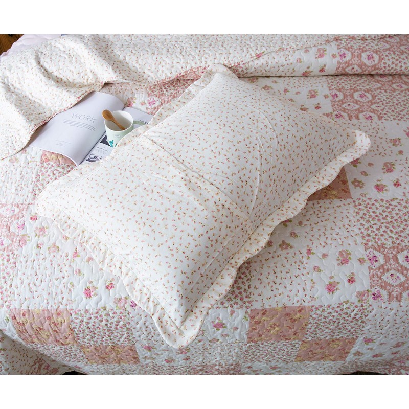Kasentex Country-Chic Printed Pre-Washed Quilt Set - Microfiber Fabric Quilted Pattern Bedding (Multi-Pink, Queen + 2 Shams)