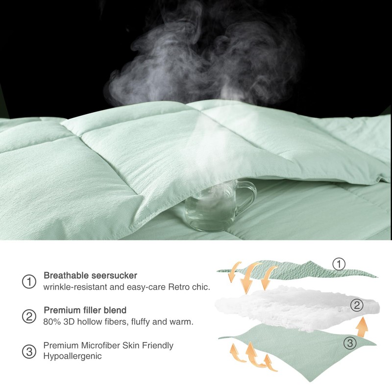 - CHIC SEERSUCKER TEXTURE: This lovely Twin-size seersucker comforter is designed with a seersucker textured front for a simple and elegant look. The back is soft and breathable microfiber, making it perfect for anyone who likes to stay cool and comfortable on their side. It's great for all skin types, so you can snooze in style