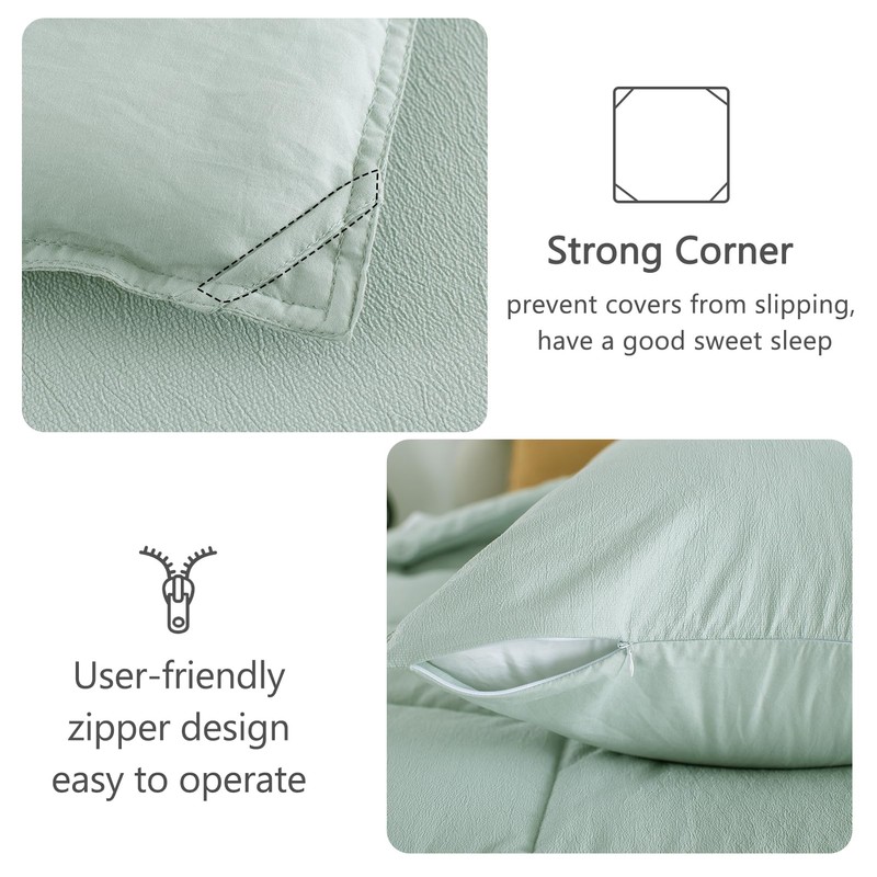 - COMFORTER AND BREATHABLE:We are delighted to tell you that our twin size comforter set are all certified Oeko-Tex 100, with absolutely no harmful chemicals! Not only that, they are incredibly soft and cosy, and skin-friendly too. blue comforter set perfect for all the family, with their Seersucker texture that prevents wrinkles. And even your pets can enjoy them as they won't attract your pets fur