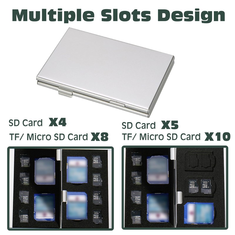 - High-quality materials: the card memory card case is made of a high-quality aluminium alloy with integrated high-density EVA foam, which is strong, durable and shockproof and can fix the memory card well and protect it from damage, scratches or loss.