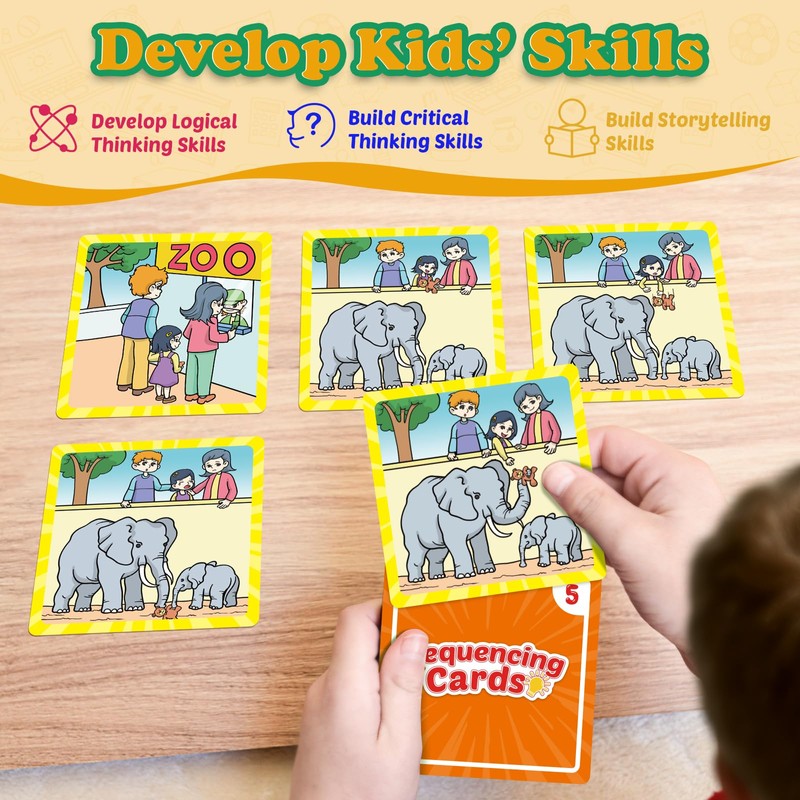 - 【Improves Skills】 Sequencing cards can help children understand the sequence of daily life activities and storylines, and develop their critical thinking, logical thinking and reasoning skills. Use it as a preschool, elementary school educational game or a social skills game to develop your child's social emotional skills.