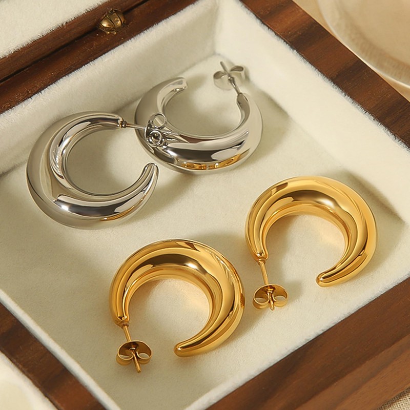 - STYLE: these small chunky gold hoop earrings for women feature an elegant and classic design, complementing a wide range of jewelry and seamlessly enhancing any outfit. Whether it's your everyday office attire or an elegant evening ensemble, these small chunky hoop earrings for women add an elegant and charming touch to your look.