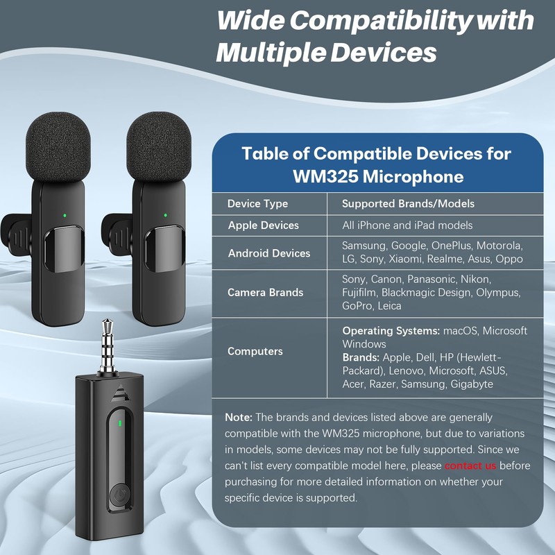 - Guidelines for Device Compatibility: Our microphone is compatible with most devices using Lightning, Type-C, or TRRS interfaces. However, performance may vary depending on your device’s specifications. Some low-end Android devices or low-quality electronics may result in suboptimal sound quality. For optimal performance, please contact us before purchasing to confirm compatibility