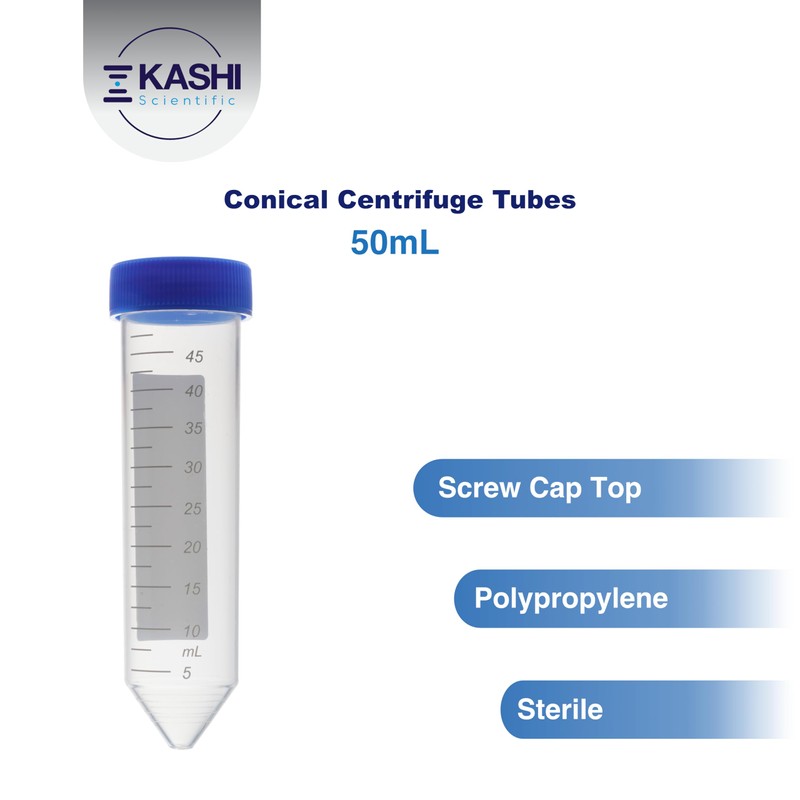Kashi Scientific Conical Centrifuge Tubes 50mL, [25 Pack] Plastic Test Tube with Screw Caps, 50mL Sterile Test Tubes with Lids, 50 mL Falcon Tubes with Printed Graduation and Write-on Spot