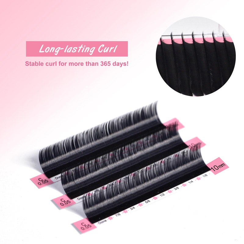 3.J/C/CC/D/DD multiple curls to choose from, our lengths ranges from 5-20mm as single tray and mixed ones, including upper and bottom lashes, you can choose the one and try every curl you like.