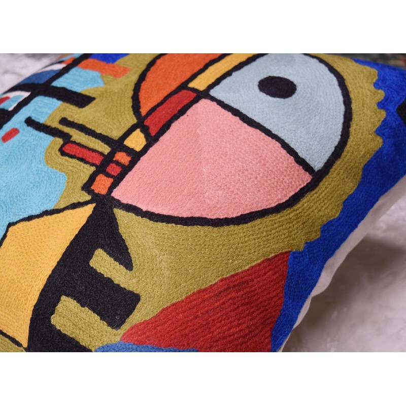 • ❤ Modern Throw Pillow Cover - Hand Embroidered: Our vibrant decorative abstract pillow covers draw inspiration from Kandinsky's artistry and are meticulously hand-embroidered using soft wool. Our skilled artisans devote painstaking attention to detail, creating an extraordinary abstract contemporary pillow that enhances your home decor. An up-close look at this contemporary accent pillow reveals the exquisite craftsmanship of fine chain-stitch hand embroidery.
