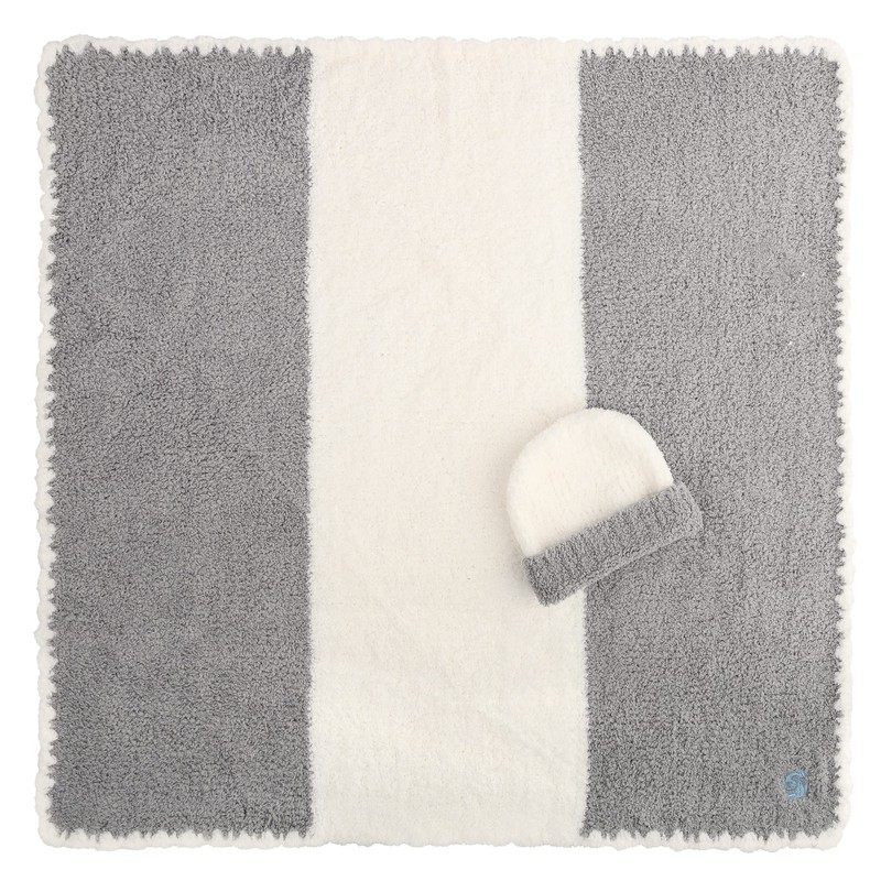 - The Center Stripe Baby Blanket and Cap duo make for a lovely gift for new parents.