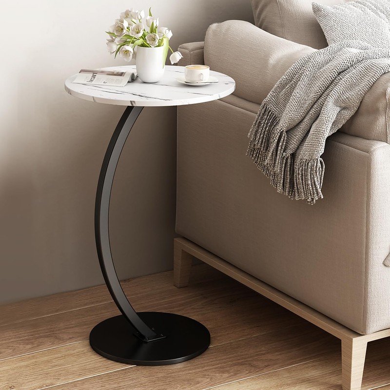 Kasinali C Shape Small Side Table Living Room, Round End Table Nightstand Bedroom, Accent Nightstand Table, White Marble Table Top 15.7 inch