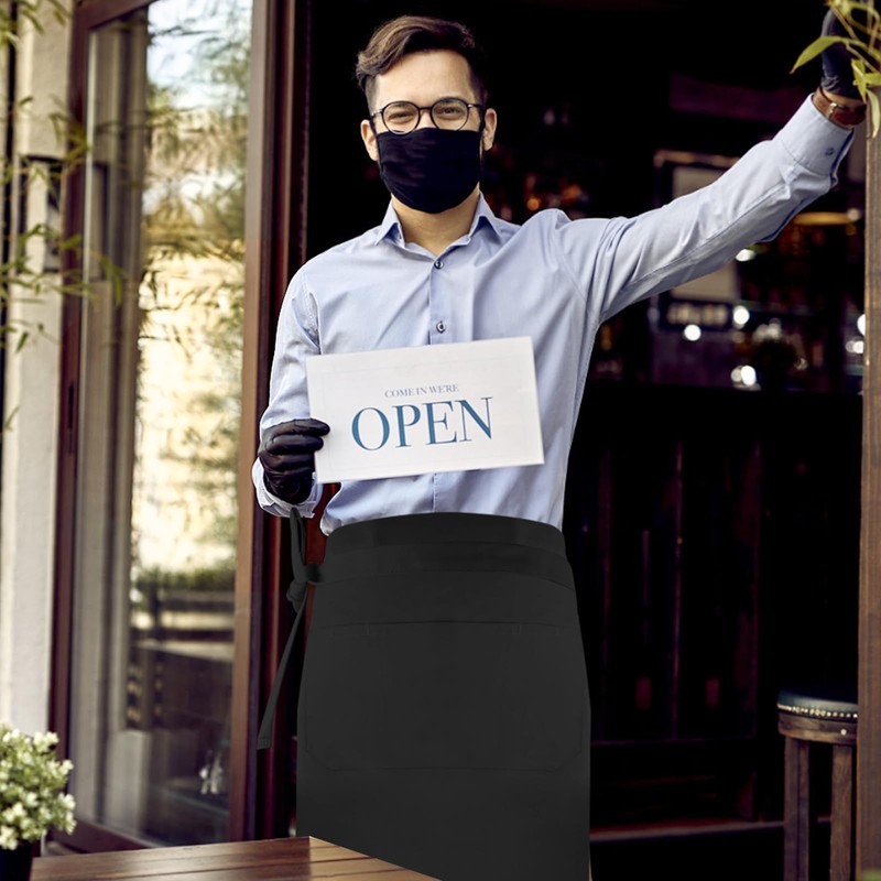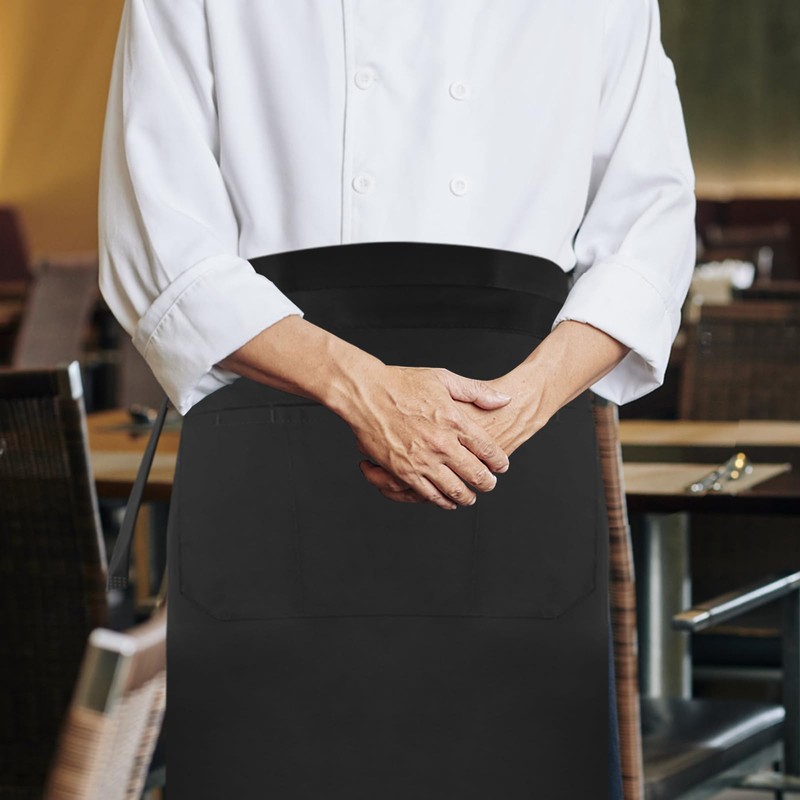 Kaslaider Half Waiter's Apron, Adjustable Cooking Apron, Unisex Apron Waist with Large Pocket, Front Tie Apron for Restaurant, Home, Bar, Cafe, 70 x 70 cm, black