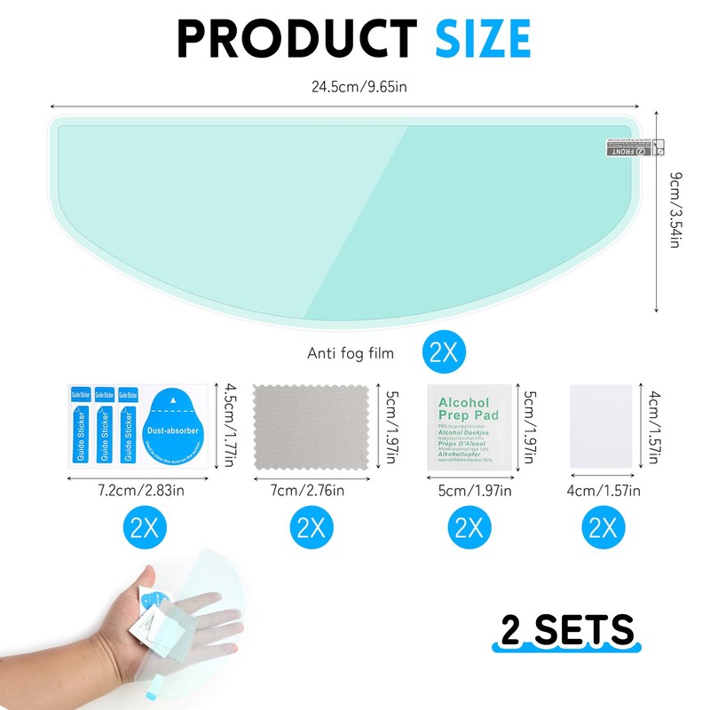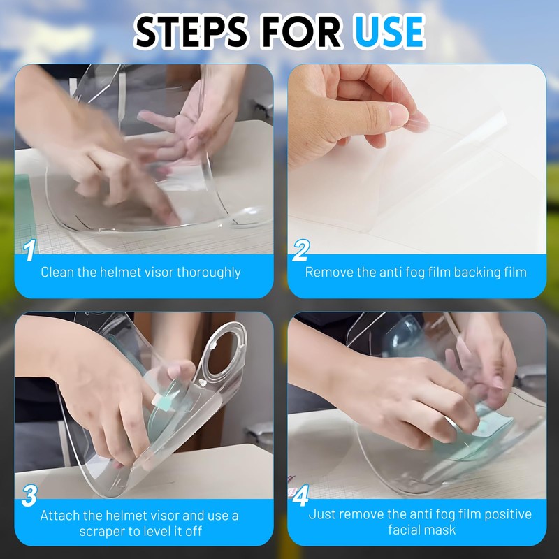 - 【Anti-Fog Film for Helmet Visor Protection】Combat fogging with anti-fog for helmet visor or helmet shield anti-fog film, ensuring maximum visibility and safety for riders in challenging weather environments.