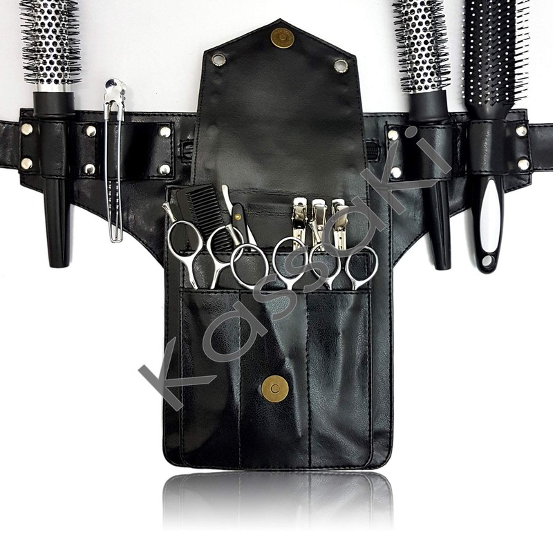 Kassaki Hairdressing Toolbelt Scissor Holster Pouch Bag 10 scissors Holder Stud Belt (Black)