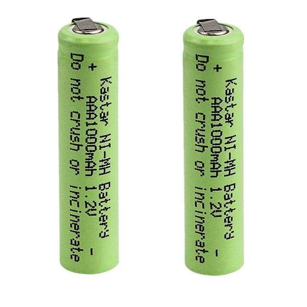 Kastar 2-Pack 1.2V Ni-MH AAA 1000mAh Rechargeable Battery w/Tabs Compatible with Electric Razors Toothbrushe High Power Static Applications (Telecoms UPS and Smart Grid) Electric Moped Waterpik