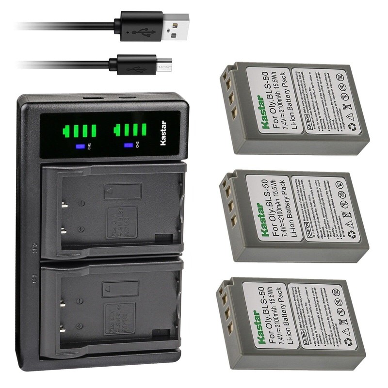 Kastar 3-Pack Battery and LTD2 USB Charger Compatible with Olympus BLS-50 Battery, Olympus BCS-5 Charger, Olympus OM-D E-M5 Mark III Mirrorless Camera