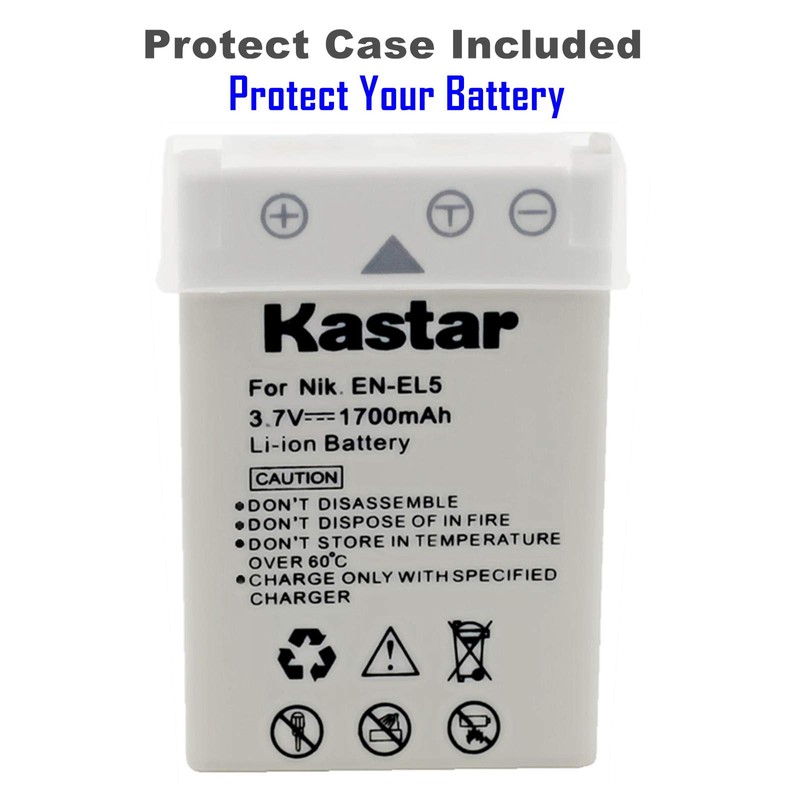Kastar Battery 1-Pack + Charger Kit for Nik EN-EL5, Nik MH-61 work with Nik Coolpix 3700, 4200, 5200, 5900, 7900, P3, P4, P80, P90, P100, P500, P510, P520, P530, P5000, P5100, P6000, S10 Cameras