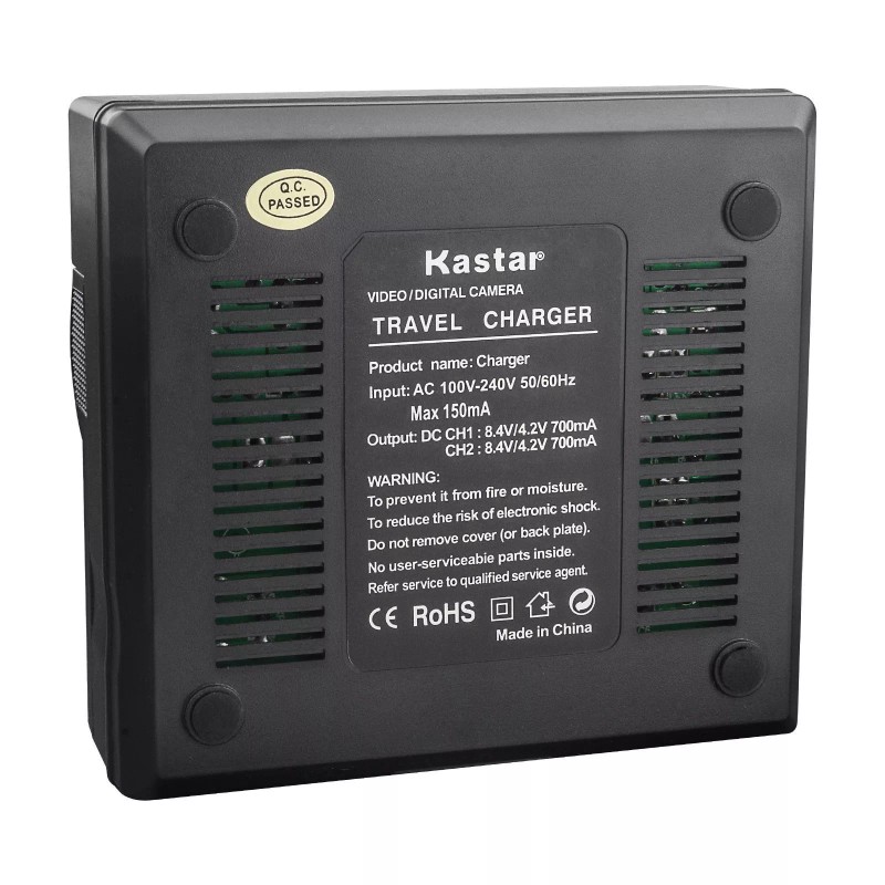 1. Kastar dual rapid charger can charge two batteries at the same time, change different plate, suitable for most of camera / camcorder batteries.