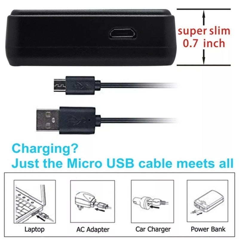 - Can be powered by USB Wall & Auto Charger or a Computer, comes with a Micro USB cable.