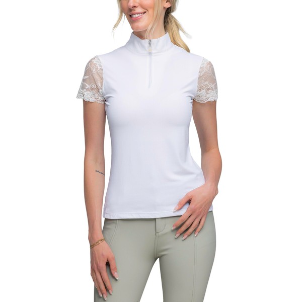 Kastel Denmark Lace Short Sleeve Base Layer Womens Activewear | Sun Protection UPF 30+ | 1/4 Zip Golf, Equestrian, Outdoor