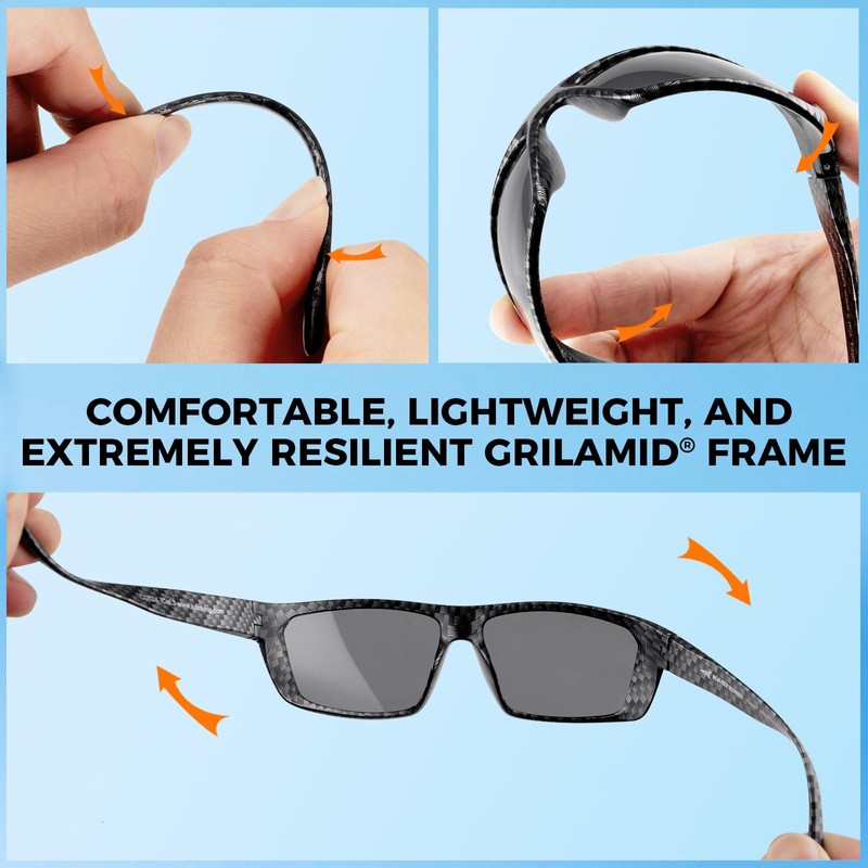- SUPERIOR FRAMES – Made from the same Grilamid material commonly used by the military and in medical applications, our frames are lightweight, extremely flexible, and heat and UV resistant. Grilamid frames are well known for their strength, lightweight comfort, shape integrity, and impact resistance. This ultra-lightweight and malleable material translates to a very comfortable fit.
