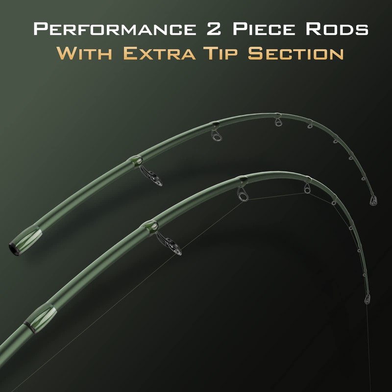 These rods come in a striking stryker green color with a comfortable and slip-resistant rubber cork handle that provides a secure grip, allowing you to fish for hours without experiencing any discomfort or fatigue.