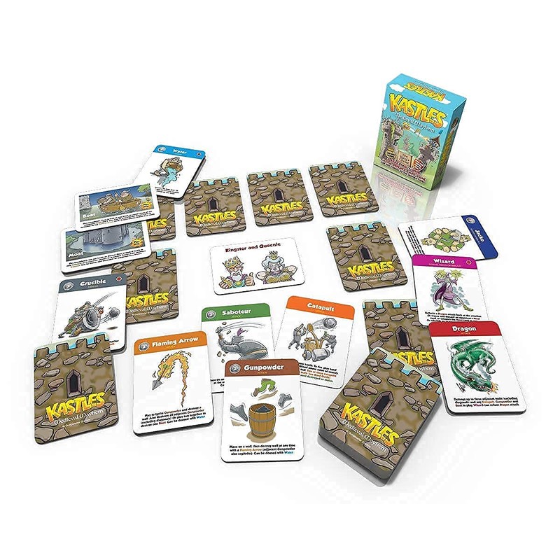 KASTLES is a popular Castle Defence Card Game | Defend Your Stronghold: Gunpowder, Dragons, Catapults, Rocks & Arrows | 2-4 Players | A fun Strategy Game for Kids & Adults | Travel & Family Friendly