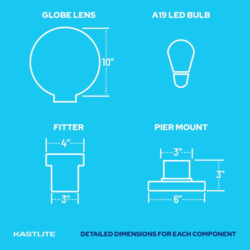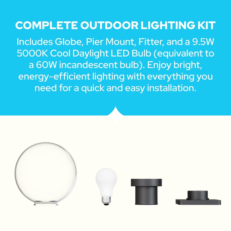 - ✅ ALL-IN-ONE LIGHTING KIT: Comes complete with a 10" acrylic globe, pier mount, fitter, and 5000K LED bulb. A full solution for outdoor post light fixtures—no need to purchase separate parts.