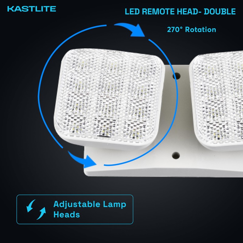 KastLite 2.4-Watt Indoor Adjustable Double Head Integrated LED White Emergency Remote Head, 90 Minute Backup Battery, 200 Lumens, 120/277V