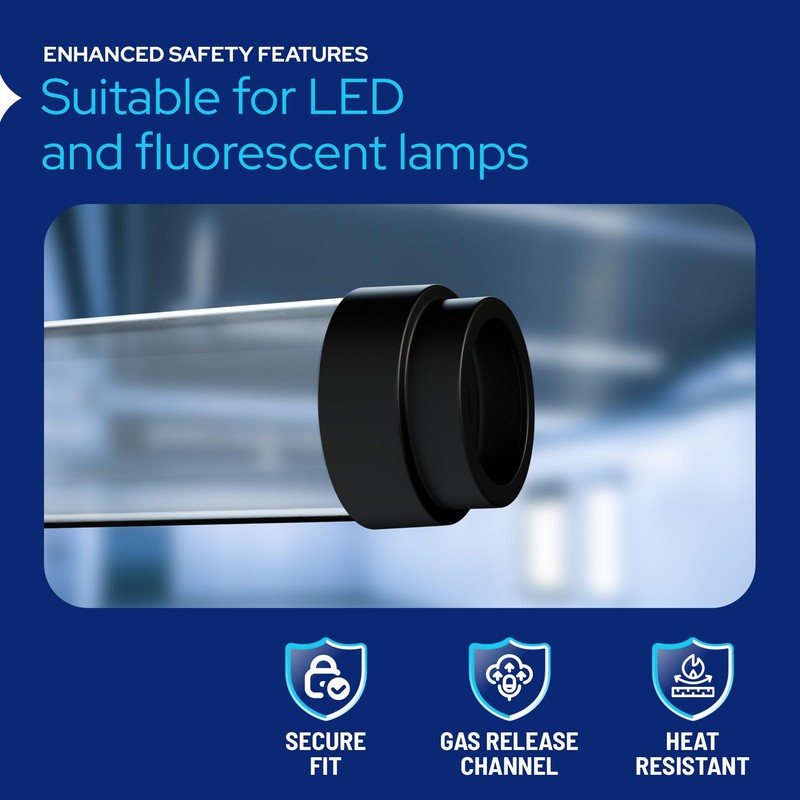 - DURABLE PLASTIC CONSTRUCTION: Designed to complement fluorescent light bulb plastic tubes with caps, these heat-resistant replacement end caps are built to withstand industrial, commercial, and residential demands.