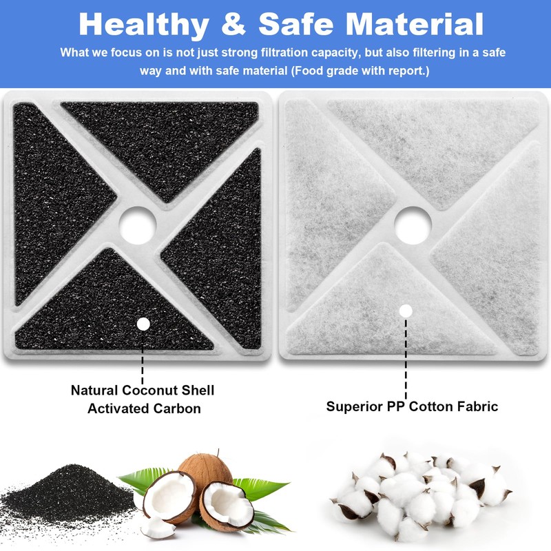 - 【Vets-approved Quality】 Kastty has been focused on f-iltering for many years and still insists on being itself without any compromise on quality or risking anything that may have negative health effects on your pets. All materials are food grade: Premium PP cotton with fine craftsmanship(No chance to rip open) and first-grade coconut shell activated carbon only, no any additives or particles that hurt rather than help and no more slime or growing things.