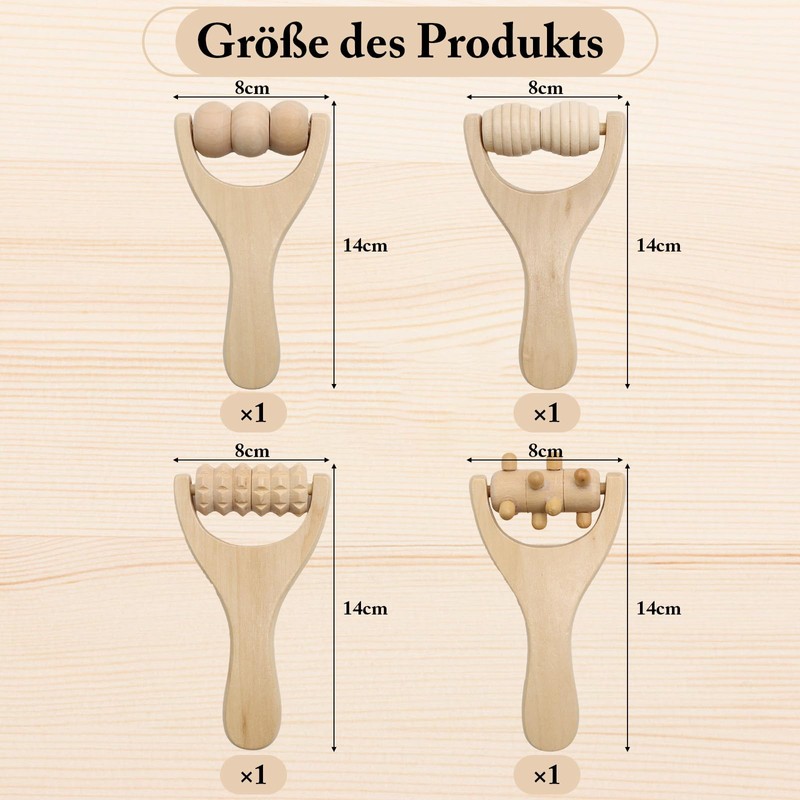 KASURE 4 Stück Massageroller,Massagegerät Nacken Schulter,Faszienrolle Mit Griff,Faszienrolle Holz,Hand Massagegerät,Für Hals,Hände Und Beine