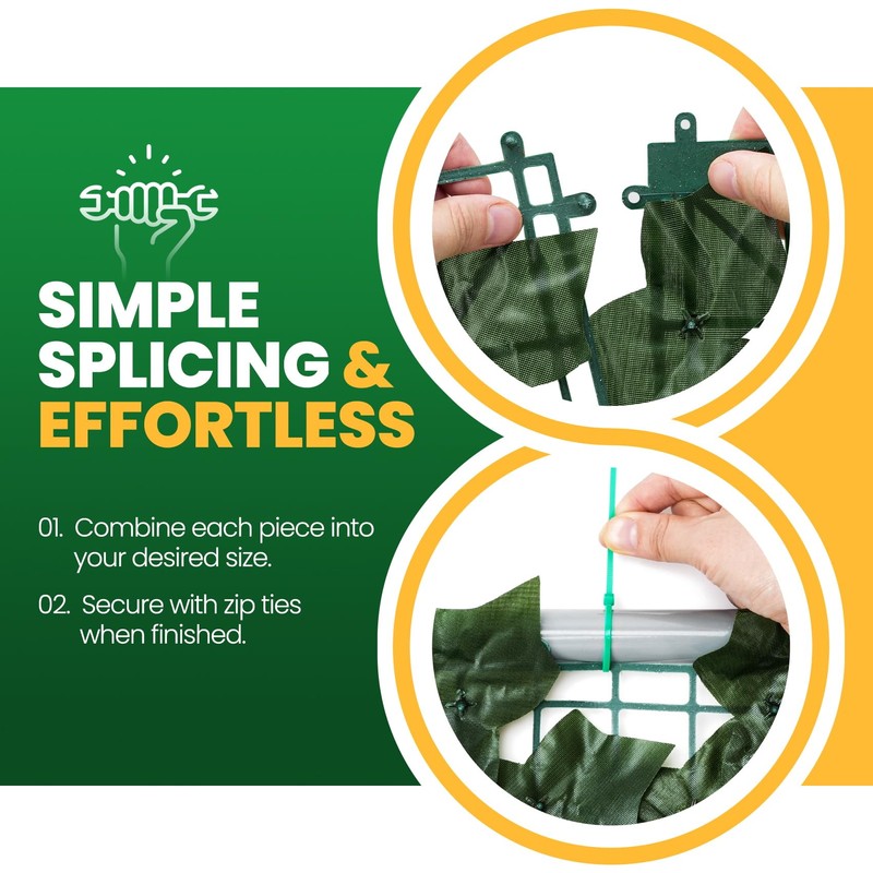 - Easy Installation: The fence grass is come with 25pcs zip ties, you can use the zip ties we provide to install it. Our artificial ivy privacy fence screen consists of 12 piece mini-artificial hedges fence with interlocking connectors, you can take down the greenery panel easily to fit and shape to any space you want creating privacy in the design you like most.