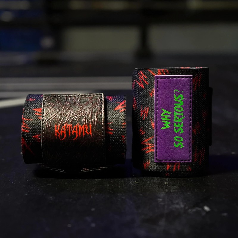 Katamu | Premium Wrist Straps | Wrist Support for Weighlifting, Powerlifting and Bodybuilding (Joker - Why So Serious Large)