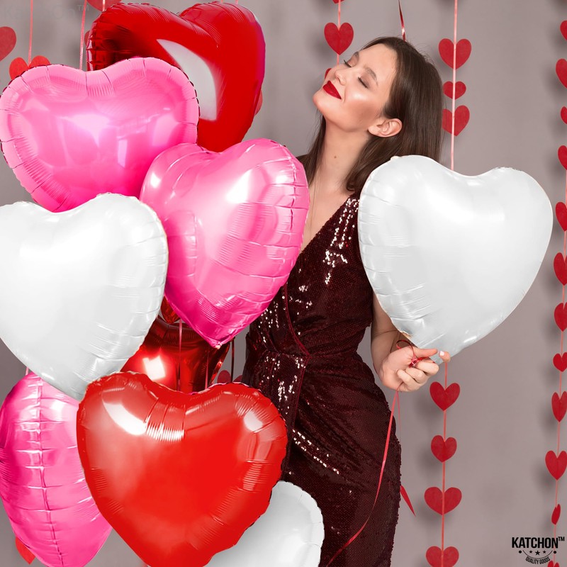 - HUGE PACK OF 12 | ROMANTIC VALENTINES DAY BALLOONS : You will receive Pack of 12, 18 Inch heart shaped balloons for valentines day. comes with Red heart shaped balloons pack of 5, Pink heart shaped balloons pack of 4 and White heart shaped balloons pack of 3. Ideal for Cool Valentines day balloons, galentines day decorations, and many occasions Enjoy these heart foil balloon for galentines day decorations. Get these high quality heart baloons and make a romantic decorations special night.
