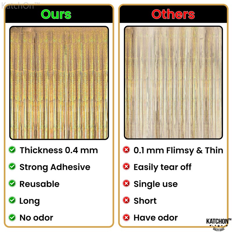 - BUY WITH CONFIDENCE - Customer satisfaction is our main objective, so we personally made sure that the materials we used in gold tinsel garland are Grade A Quality. We will make sure that what you saw on picture i.e., katchon champagne gold fringe, gold fringe curtain backdrop. We are always happy to help you regarding this gold party decoration if you are not satisfied by gold photo backdrop quality for any reason. Place your order now for Prom decorations 2024!
