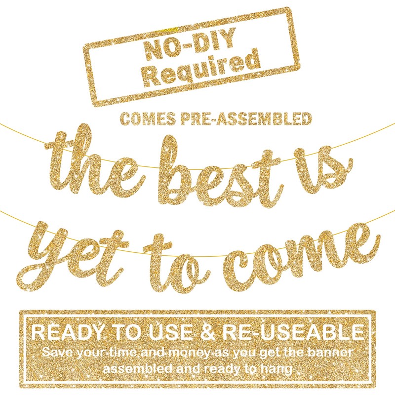 KatchOn, Glitter The Best Is Yet to Come Banner - Large10 Feet, No DIY | The Best Is Yet to Come Sign for Graduation Farewell Party 2024 | Congratulations Banner for Gold Graduation Decorations 2024